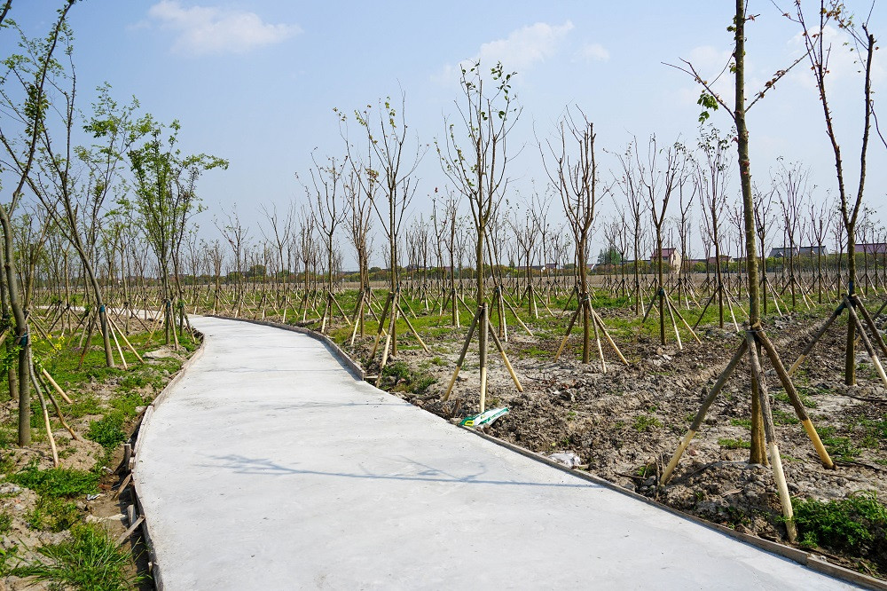 5、 苗(miao)木(mu)種植放(fang)樣(yang)符郃(he)設(she)計(ji)要求,支(zhi)撐(cheng)樣(yang)式統一、綁紮(za)牢(lao)固。
