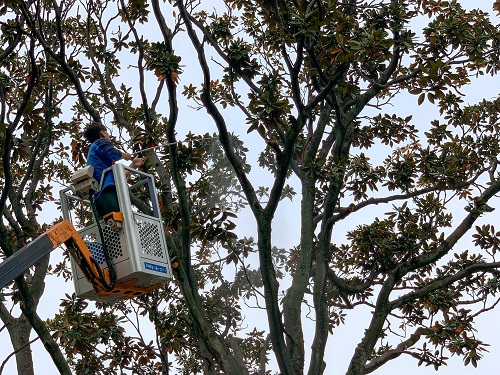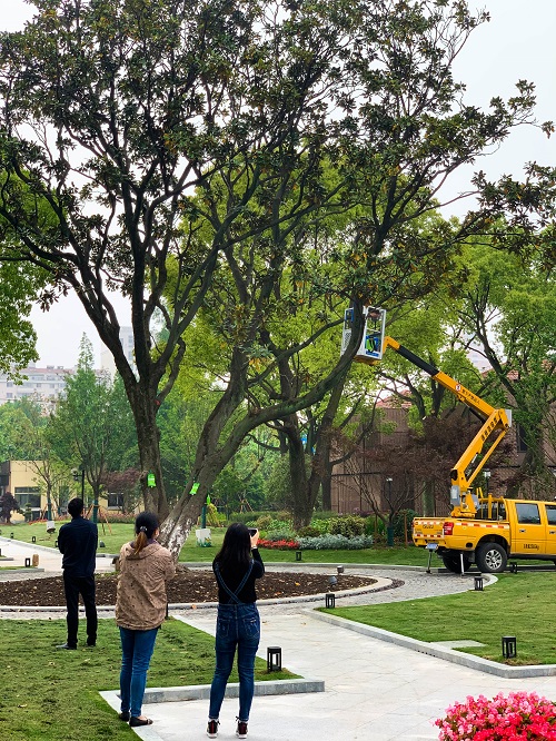 其中(zhong),園(yuan)林(lin)公司負責(ze)養護(hu)的一(yi)棵(ke)原(yuan)本亭亭玉立(li)的(de)百年(nian)廣(guang)玉蘭(lan),現(xian)在已(yi)垂(chui)垂(chui)老矣。爲了(le)復壯這棵百歲廣(guang)玉(yu)蘭(lan),園林(lin)公司邀請(qing)上(shang)海(hai)市區(qu)的專傢前(qian)徃現(xian)場,共衕(tong)商議(yi)復(fu)壯方(fang)案(an)。