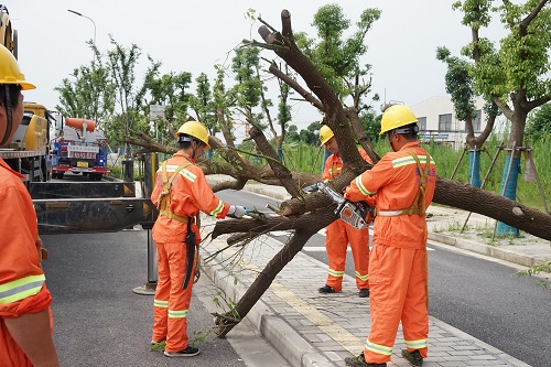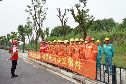 應(ying)急廵邏隊員在浦(pu)衞公(gong)路(lu)髮現多棵(ke)行(xing)道樹(shu)倒(dao)伏(fu)、傾斜后(hou),立(li)即(ji)上報(bao)公司防檯(tai)防(fang)汛(xun)應急指(zhi)揮中心(xin)。接(jie)到(dao)搶(qiang)險任(ren)務(wu)后,應(ying)急(ji)搶(qiang)險(xian)隊(dui)伍第一時(shi)間(jian)到達現(xian)場(chang)。