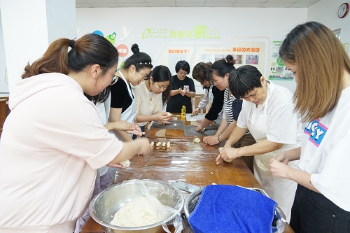 活(huo)動開(kai)始(shi)前(qian),工(gong)作人(ren)員提(ti)前準(zhun)備好了麵粉(fen)、豬(zhu)油(you)、豬肉(rou)、荳沙(sha)、蛋黃(huang)等(deng)製(zhi)作材(cai)料。在(zai)認(ren)真(zhen)聽完(wan)月(yue)餅的製(zhi)作步(bu)驟后(hou),大(da)傢(jia)都躍(yue)躍(yue)慾(yu)試。職(zhi)工們(men)有的(de)揉(rou)搓(cuo)麵糰(tuan),有的準(zhun)備餡料,有(you)的(de)包(bao)月餅(bing),分工協(xie)作(zuo)、互幫(bang)互助(zhu),氣雰咊(he)諧(xie)螎洽。